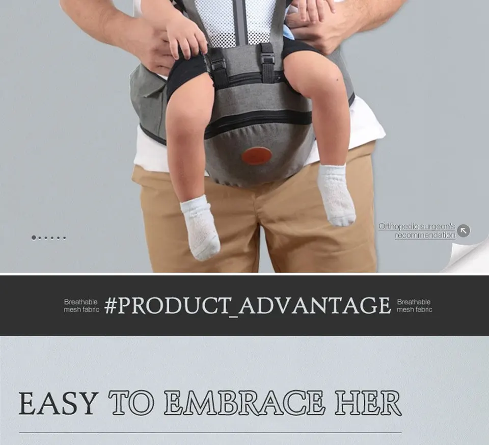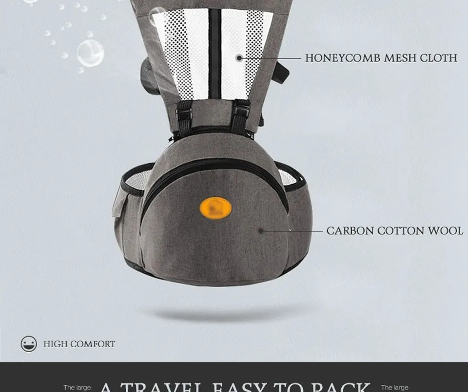 Hip Seat Design-Projetado com um assento almofadado largo, o bebê está confortavelmente sentado com quadris bem apoiados, proporcionando-lhe uma maneira conveniente de facilmente obter o bebê para cima e para baixo instante