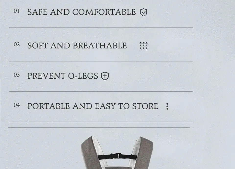 É leve e resistente, com fivelas e correias de segurança para segurar o bebê com segurança, materiais sem produtos químicos aplicados e aprovados pelos padrões globais de segurança